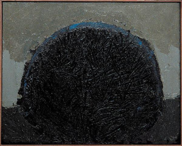 - NOTIZIE STORICO CRITICHE Dopo sette anni l'artista ritorna sul motivo inaugurale della sua stagione lombarda, il cespuglio di rovi sul quale affaccia la finestra dello studio. Tuttavia, l'esuberante naturalismo dei precedenti si compone in una struttura formale più rigorosa: la grande e compatta massa sferica del cespuglio, quasi nera e fittamente incisa al suo interno, si staglia in una sospensione quasi metafisica, contro il cielo. Roveto, 2, come spesso avviene nelle riprese di un soggetto, è più grande e monumentale, più denso negli impasti e, pur potente nella sua presenza plastica, tradisce una maggior fatica e pesantezza nella costruzione, soprattutto se confrontato con la sospensione quasi metafisica del numero 1.