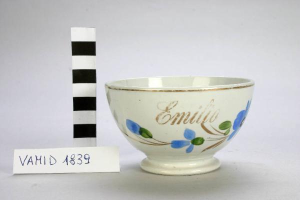 Ciotola da colazione con decorazione floreale. Nome "Emilio" e rifiniture dei motivi floreali e sull'orlo in oro brillante.