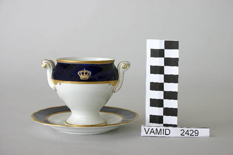 - NOTIZIE STORICO CRITICHE La salsiera fa parte di un servizio già appartenuto agli Scotti Meregalli di Laveno e caratterizzato dalla corona del Regno d'Italia: il servizio è unico e non risulta prodotto in serie. Oltre agli esemplari in esposizione (inv. 2425-2438), sono conservati al museo altri otto piatti, una salsiera, una zuppiera, cinque porta uova e un piatto da portata.