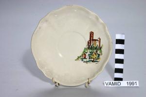 - NOTIZIE STORICO CRITICHE Il piattino appartiene a un servizio da thè di "forma Pescara" o "forma Vecchia Milano". L'oggetto è decorato con transfer di colore marrone, colorato a mano sotto smalto in verde, giallo e azzurro.