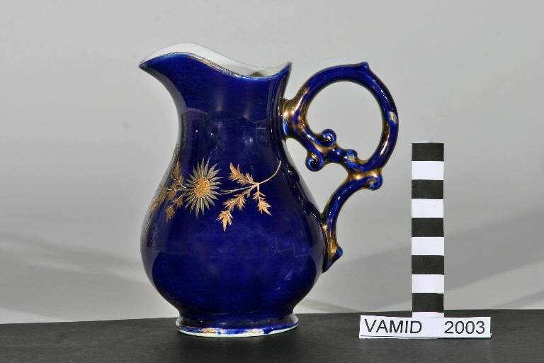 - NOTIZIE STORICO CRITICHE La lattiera fa parte di un servizio in blu cobalto databile tra la fine dell'Ottocento e l'inizio del secolo successivo. La coloritura blu è eseguita sottosmalto mentre i fiori sono realizzati in parte a rilievo a terzo fuoco in policromia e con oro brillante.
