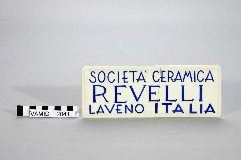 targa con iscrizione di Società Ceramica Revelli - ambito lavenese (sec. XX)