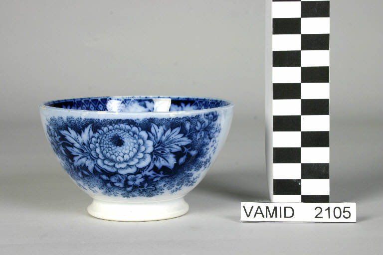 - NOTIZIE STORICO CRITICHE La ciotola è decorata con l'applicazione di transfer in azzurro. Di questa tipologia esiste un'altra ciotola conservata nel Museo (in nero e nelle gradazione del grigio) attribuibile alla Società Ceramica Italiana di Laveno (n. inv. 2060). Tuttavia non si può escludere che il manufatto in esame appartenga ad un'altra manifattura.