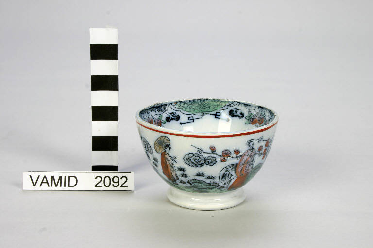- NOTIZIE STORICO CRITICHE La ciotola è decorata mediante transfer nero applicato sottosmalto. E' poi colorata a mano con lustro colore rosa pesca sottosmalto e rosso e verde soprasmalto.