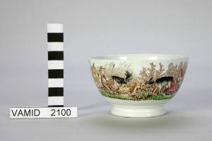 - NOTIZIE STORICO CRITICHE La ciotola è decorata con transfer marrone applicato sottosmalto e colorato, sempre sottosmalto, in verde, nero, giallo e rosa. Il termine ante quem è l'anno di fusione della Richard con la Ginori e del conseguente cambiamento della ragione sociale in Richard-Ginori.