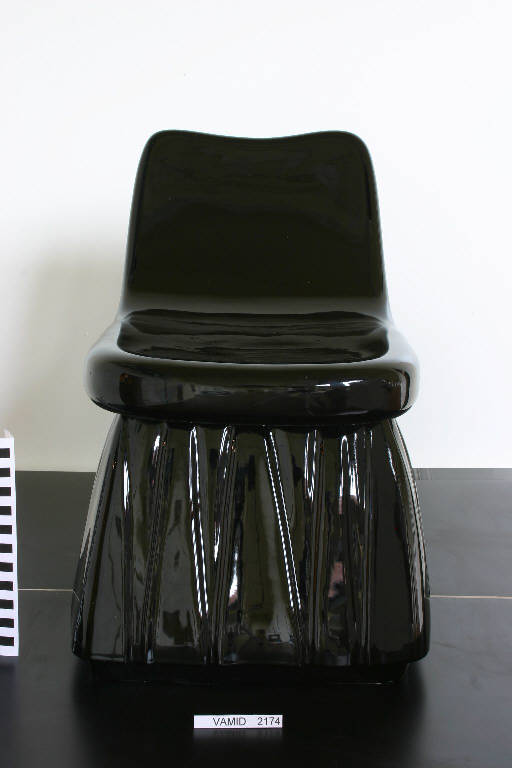 - NOTIZIE STORICO CRITICHE La poltroncina, realizzata in vitreus China che è una ceramica vetrificata, a pasta bianca leggermente grigiastra o colorata artificialmente, è eseguita a colaggio con smaltatura in nero lucido. L'arredo è stato realizzato in un unico esemplare come campione mai messo in produzione.