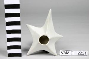 Portacandela a forma di stella, interamente smaltato in bianco opaco.