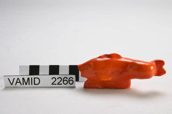 - NOTIZIE STORICO CRITICHE La sculturina, eseguita in serie in colore corallo, fa parte di un gruppo di piccole opere in terraglia smaltata raffiguranti animali marini attribuibili ad Angelo Biancini. E' databile al 1937-1940, periodo nel quale Biancini si trasferisce a Laveno per collaborare con Guido Andlovitz alla direzione artistica. L'opera, sprovvista di marchio, è riportata nel "Catalogo ceramiche artistiche 1939" della S. C. I. Laveno con la denominazione "Pesciolino" (n. 159, 1521/1).