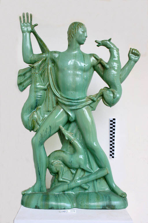 - NOTIZIE STORICO CRITICHE La statua è interamente rivestita di smalto verde con rifiniture in smalto dorato sui capelli di Atteone, sugli occhi dei cani, sulle pieghe del mantello e su altri particolari.
