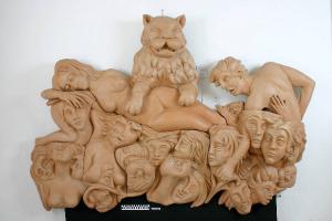 - NOTIZIE STORICO CRITICHE L'opera è stata eseguita a colaggio in terra rossa di Faenza e assemblata su supporto ligneo. Progettata da E. Baj, la composizione è stata eseguita prasso la Bottega Gatti di Faenza e poi colata in tre esemplari.