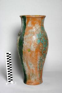 - NOTIZIE STORICO CRITICHE Il vaso, eseguito al tornio, è decorato con colori a rilievo e applicazione di sabbia. L'oggetto è uscito dalle Fornaci San Giorgio di Albissola.
