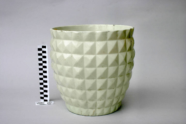 Vaso smaltato di bianco con superficie a punte di diamante a rilievo.