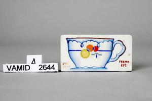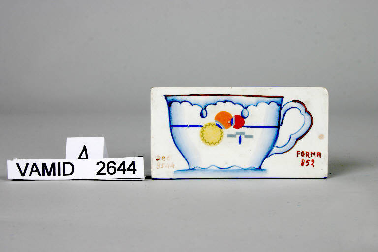 Piastrella decorata sul recto e sul verso con modelli di tazze.