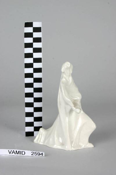 - NOTIZIE STORICO CRITICHE In questa statuetta da presepio del pittore e scultore cremasco Fayer vi è una qualità 'barocca' nel modellato enfatico del panneggio che avvolge la figura imprimendo ad essa un senso di movimento. Questo dinamismo, non privo di inquietudine, viene accentuato dallo smalto lucido che copre uniformemente la figura e che crea effetti di luce.