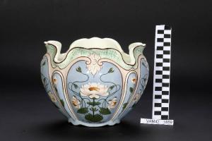 - NOTIZIE STORICO CRITICHE Il vaso portafiori, decorato a mano sotto vernice a colori e lustri, è segnalato nel catalogo "Articoli di fantasia e decorazione" del 1908 come "potiche Louis XV". Il manufatto di gusto Liberty testimonia la vivace ed estesa diffusione di questo stile in Lombardia e in particolare nell'area dei laghi
