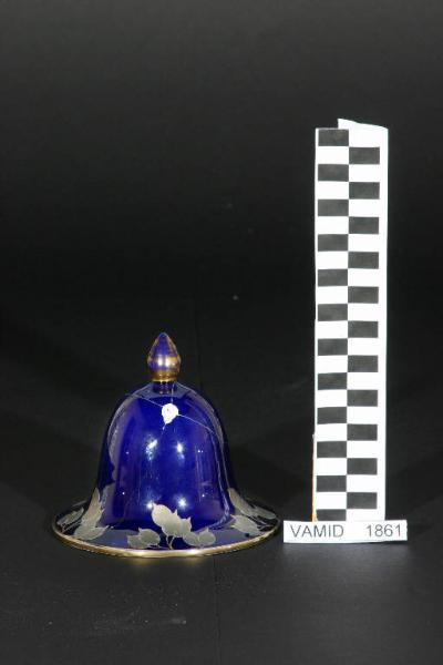 Vaso con coperchio smaltato in blu cobalto.Decorato a mano con motivi floreali stilizzati, sopra smalto e in rilievo, con oro fino e argento.