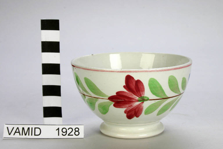 - NOTIZIE STORICO CRITICHE La ciotola, decorata a mano sotto smalto, presenta un decorazione simile a quella dell'opera inv.1916.\nOggetti di forma simile sono presenti nelle tavole dei decori con dicitura "Tazzina Milano" (Busta 95, fascicolo 2 Archivio SCI).