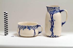 - NOTIZIE STORICO CRITICHE Il servizio da camera, composto da quattro elementi (nn. inv. 658-661), è in terraglia pasta color avorio con decorazione floreale a bassorilievo miniata eseguita sottosmalto. Forma e decoro sono molto simili a un servizio da camera (nn. inv. 2145-2149) con decorazione in rosa prodotto dalla manifattura Sarreguemines e ad un servizio da camera della forma denominata "Flora n. 5-6" prodotto dalla Società Ceramica Italiana di Laveno.