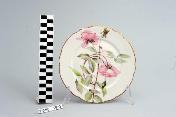 - NOTIZIE STORICO CRITICHE La decorazione floreale, realizzata con la tecnica della decalcomania con morbidi effetti di chiaroscuro e con una policromia ricca e sfumata, e la foggia ancora classica e morbidamente ondulata del piatto richiamano una tipologia molta in voga all'inizio del Novecento. La datazione al primo quarto è confermata dal marchio presente sul fondo impresso dalla Richard Ginori su tutti gli oggetti prodotti nello stabilimento di Doccia dal 1880 al 1930. Il piatto in esame, appartenente ad un servizio composto da dodici elementi (nn. inv. 1931-1935, 3248-3254), fa parte di una donazione di privati al Museo.
