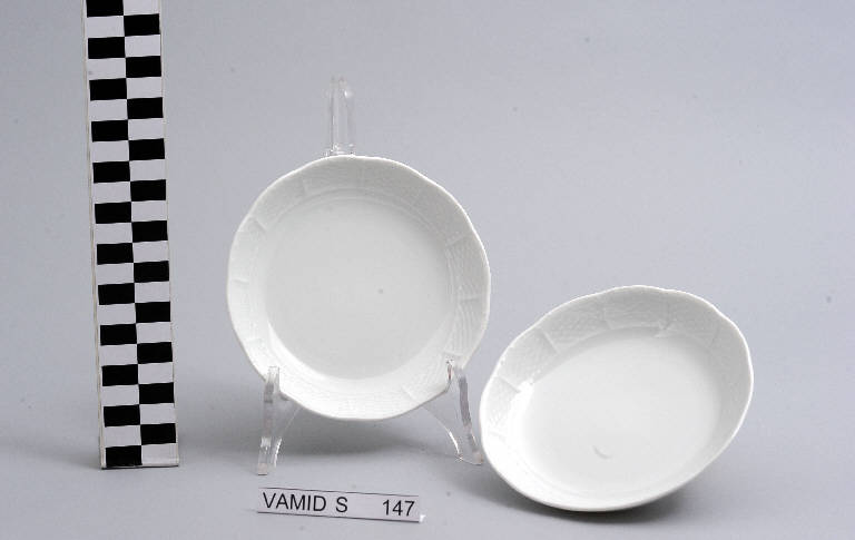 - NOTIZIE STORICO CRITICHE Lo stile del servizio, composto da due elementi (nn. inv. 3120-3121), indica una datazione ormai avanzata nel Novecento. Il marchio presente sul fondo di entrambe le ciotole, applicato inizialmente sugli oggetti prodotti dalla Richard Ginori presso lo stabilimento di Sesto Fiorentino, iniziò ad essere usato intorno al 1930. Nei primi anni il timbro si presentava nel colore rosso e successivamente in blu e verde. Dal 1970 circa al marchio venne aggiunta la scritta "Italy". Il servizio fa parte di una donazione di privati al Museo.