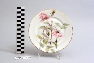- NOTIZIE STORICO CRITICHE La decorazione floreale, realizzata con la tecnica della decalcomania con morbidi effetti di chiaroscuro e con una policromia ricca e sfumata, e la foggia ancora classica e morbidamente ondulata del piatto richiamano una tipologia molta in voga all'inizio del Novecento. La datazione al primo quarto è confermata dal marchio presente sul fondo impresso dalla Richard Ginori su tutti gli oggetti prodotti nello stabilimento di Doccia dal 1880 al 1930. Il piatto in esame, appartenente ad un servizio composto da dodici elementi (nn. inv. 1931-1935, 3248-3254), fa parte di una donazione di privati al Museo.