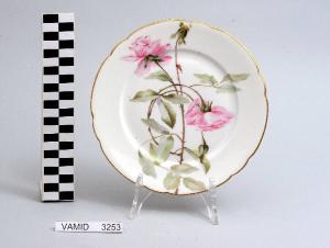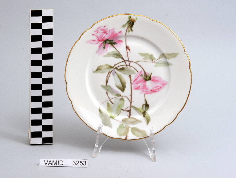- NOTIZIE STORICO CRITICHE La decorazione floreale, realizzata con la tecnica della decalcomania con morbidi effetti di chiaroscuro e con una policromia ricca e sfumata, e la foggia ancora classica e morbidamente ondulata del piatto richiamano una tipologia molta in voga all'inizio del Novecento. La datazione al primo quarto è confermata dal marchio presente sul fondo impresso dalla Richard Ginori su tutti gli oggetti prodotti nello stabilimento di Doccia dal 1880 al 1930. Il piatto in esame, appartenente ad un servizio composto da dodici elementi (nn. inv. 1931-1935, 3248-3254), fa parte di una donazione di privati al Museo.