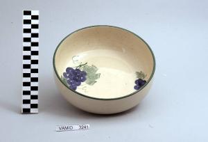- NOTIZIE STORICO CRITICHE L'oggetto in esame, appartenente ad un servizio da tavola (nn. inv. 3161, 3168, 3183, 3239-3243), è decorato a mano. Si inserisce in un filone di gusto per stoviglie e vasellame per alimenti che richiama i decori naturalistici in voga all'inizio del Novecento. Questo revival fu particolarmente vivo negli anni Ottanta del secolo scorso. Tipologicamente si lega ad un servizio da colazione (nn. inv. 3162, 3164), ad un servizio da thè (nn. inv. 3163, 3165, 3169, 3182, 3244) e ad un servizio da caffè (nn. inv. 3166-3167, 3170-3171). L'insalatiera fa parte di una donazione di privati al Museo.