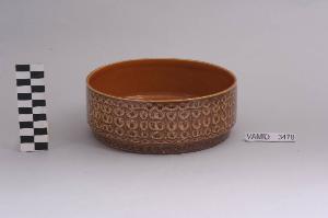 - NOTIZIE STORICO CRITICHE L'insalatiera in esame appartiene a un servizio da tavola di sessantasette elementi (num. inv. 3420-3486), riferibile ad una produzione di vasellame di gusto vivace e colorato. Il design essenziale e funzionale richiama il servizio impilabile denominato "Colonna" di Giovanni Gariboldi per Richard-Ginori, che vinse il Compasso d'Oro nel 1954 e che fu prodotto fino al 1967. Per questo riferimento e per la tipologia del decoro "a occhi" o a "piume di pavone" il servizio in oggetto può essere collocato negli anni '60. Il marchio presente sul fondo consente di attribuire il servizio alla Società Ceramica Revelli che chiuse definitivamente i battenti nel 1980. L'insalatiera fa parte di una donazione di privati al Museo (Lavezzari Fabio, 2009).