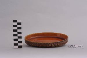- NOTIZIE STORICO CRITICHE L'antipastiera in esame appartiene a un servizio da tavola di sessantasette elementi (num. inv. 3420-3486), riferibile ad una produzione di vasellame di gusto vivace e colorato. Il design essenziale e funzionale richiama il servizio impilabile denominato "Colonna" di Giovanni Gariboldi per Richard-Ginori, che vinse il Compasso d'Oro nel 1954 e che fu prodotto fino al 1967. Per questo riferimento e per la tipologia del decoro "a occhi" o a "piume di pavone" il servizio in oggetto può essere collocato negli anni '60. Il marchio presente sul fondo consente di attribuire il servizio alla Società Ceramica Revelli che chiuse definitivamente i battenti nel 1980. L'antipastiera fa parte di una donazione di privati al Museo (Lavezzari Fabio, 2009).