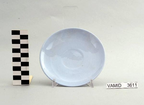 - NOTIZIE STORICO CRITICHE L'oggetto in esame, prodotto serialmente anche in altri colori, appartiene ad un servizio da thè (num. inv. 3608...3621). Il design semplice ed essenziale, che sembra vagamente ricordare la pulizia della forma "Pomezia", indica una piena assimilazione del funzionalismo e quindi una datazione ormai avanzata nel Novecento. Si tratta di una produzione, probabilmente influenzata dai progetti dell'Andlovitz, riferibile alla metà del secolo. Nel Midec è conservato un servizio da thè identico nella variante color verde (num. inv. 3604...3631). Il piattino fa parte di una donazione di privati al Museo.