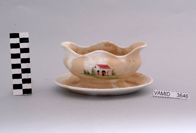 - NOTIZIE STORICO CRITICHE La salsiera, appartenente ad un servizio composto da sedici elementi (nn. inv. 2124...3010), è realizzata nella forma denominata "Vecchio Milano". Tale tipologia fu utilizzata negli anni '20 da Piero Portaluppi e successivamente, a partire dagli anni '30, da Guido Andlovitz con i decori "Lago Maggiore", "Vecchio Milano", "Fiori Vecchia Lodi" e "Meissen". Come risulta dal marchio impresso sul fondo, usato prima dalla Richard e poi dalla Richard Ginori su tutte le terraglie prodotte nello stabilimento di San Cristoforo tra il 1883 e il 1940 circa, il corpo ceramico fu realizzato entro il 1940 mentre la decorazione eseguita da Rosetta Tamburini, decoratrice attiva a Pesaro, risale al 1950 (cfr. l'iscrizione presente su quasi tutti gli elementi del servizio). La salsiera, che fa parte di una donazione di privati al Museo, non è presente nelle fotografie di insieme del servizio.