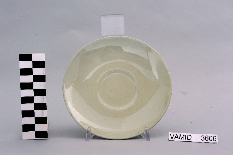 - NOTIZIE STORICO CRITICHE L'oggetto in esame, prodotto serialmente anche in altri colori, appartiene ad un servizio da thè (num. inv. 3604...3631). Il design semplice ed essenziale, che sembra vagamente ricordare la pulizia della forma "Pomezia", indica una piena assimilazione del funzionalismo e quindi una datazione ormai avanzata nel Novecento. Si tratta di una produzione, probabilmente influenzata dai progetti dell'Andlovitz, riferibile alla metà del secolo. Nel Midec è conservato un servizio da thè identico nella variante color azzurro (num. inv. 3608...3621). Il piattino fa parte di una donazione di privati al Museo.