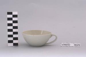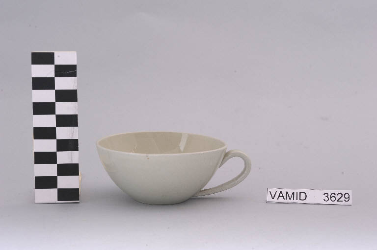 - NOTIZIE STORICO CRITICHE L'oggetto in esame, prodotto serialmente anche in altri colori, appartiene ad un servizio da thè (num. inv. 3604...3631). Il design semplice ed essenziale, che sembra vagamente ricordare la pulizia della forma "Pomezia", indica una piena assimilazione del funzionalismo e quindi una datazione ormai avanzata nel Novecento. Si tratta di una produzione, probabilmente influenzata dai progetti dell'Andlovitz, riferibile alla metà del secolo. Nel Midec è conservato un servizio da thè identico nella variante color azzurro (num. inv. 3608...3621). La tazza fa parte di una donazione di privati al Museo.