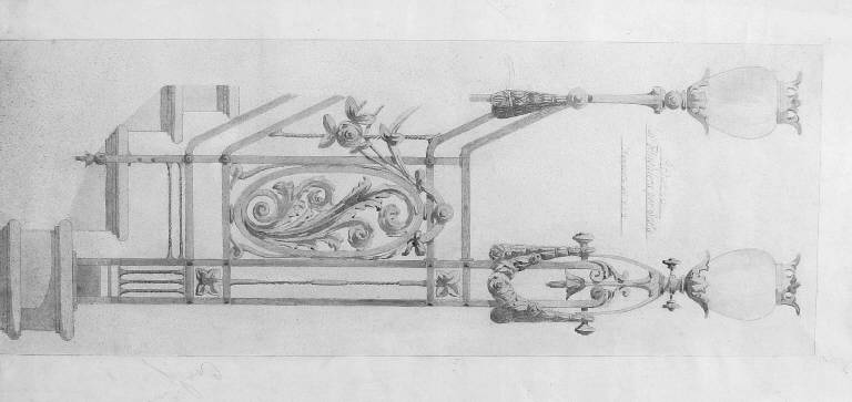 Attacco di ringhiera per scala. Studio di ferri battuti