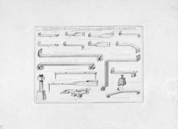 Collegamenti per opere in legno, in ferro, in pietra e in muratura. Studio di collegamenti per materiali diversi