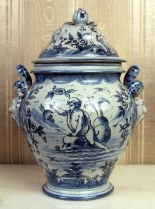 - NOTIZIE STORICO CRITICHE Le due opere provengono dalla raccolta Beretta dove rimasero fino al 1937. L'opera appartiene a quella vasta produzione delle fabbriche savonesi d'inizio Novecento quando vi fu una ripresa dei modelli e delle forme della maiolica sei-settecentesca locale. Il tentativo d'imitazione è portato all'estremo, anche grazie all'effetto "craquelure" con cui i due vasi sono interamente ricoperti. Entrambi i vasi hanno una medesima marcatura alla base con una lanterna blu, copia del simbolo di una fornace attiva nel XVII secolo.