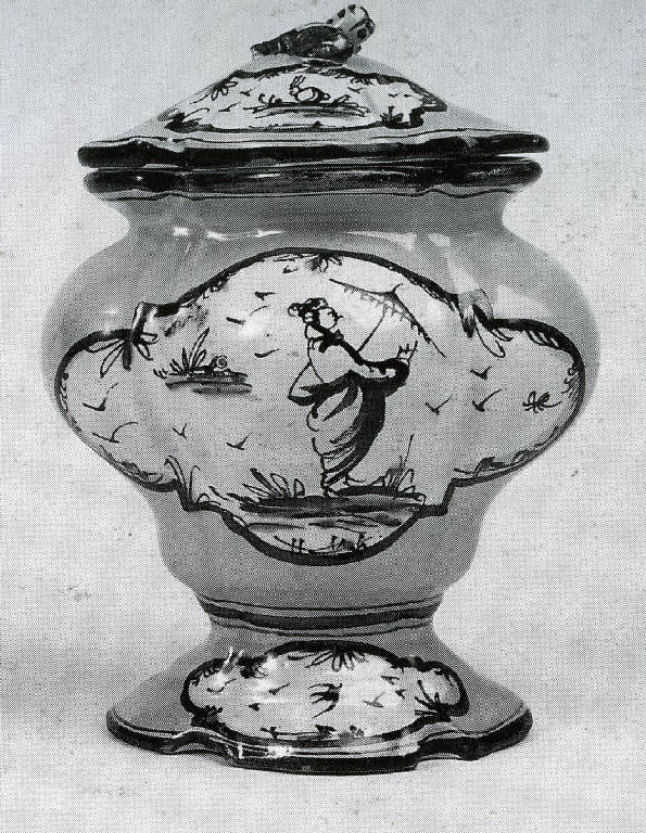 - NOTIZIE STORICO CRITICHE I due vasi sono parte del legato Rosa de Marchi Curioni del 1981. Essi si inseriscono nella quella produzione ligure del XX secolo, quando le fornaci della zona cominciarono a riprodurre le antiche maioliche locali. \nIl riferimento artistico per la realizzazione dei due vasi è Giacomo Boselli (1744-1808) come è confermato dalla presenza sotto la base dei vasi della marcatura "J.B.", Jacques Boselli.
