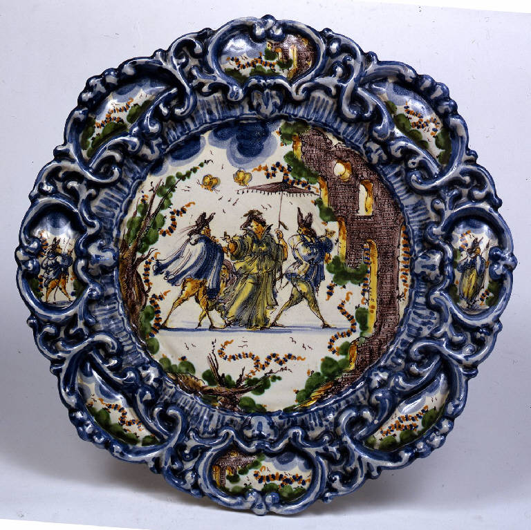 - NOTIZIE STORICO CRITICHE Acquistato dalle Civiche Raccolte alla "Prima Mostra Internazionale delle Arti Decorative" tenutasi a Monza nel 1923, il piatto appartiene a quella vasta produzione di maioliche dell'area ligure d'inizio Novecento. In particolare proviene dalla casa manifatturiera la Fenice di Albisola, come attestato dalla firma sul retro del piatto: "Fenice/Albisola/Trucco (sottolineato)". L'opera è stata realizzata dallo stesso fondatore della casa La Fenice, Manlio Trucco (1884-1974) nel 1923.