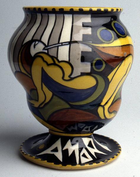 - NOTIZIE STORICO CRITICHE L'opera fu esposta durante la mostra della Galleria Pesaro di Milano "Trentatré futuristi" del 1929, e in tale occasione fu acquistata per le Civiche Raccolte. Il vaso è un esemplare di applicazione dell'avanguardia futurista a quelle arti minori che prendono nuovo rilievo all'interno delle teorizzazioni di Marinetti, e che trovano terreno fertile di produzione in Albisola. \nSotto il piede a lettere cubitali vi è la marca "Fobia anti imitativa Tullio" e la marca della manifattura "MGA" fondata da Giuseppe Mazzotti. L'opera è stata realizzata da Tullio Mazzotti (1899 - 1971), detto Tullio d'Albisola.