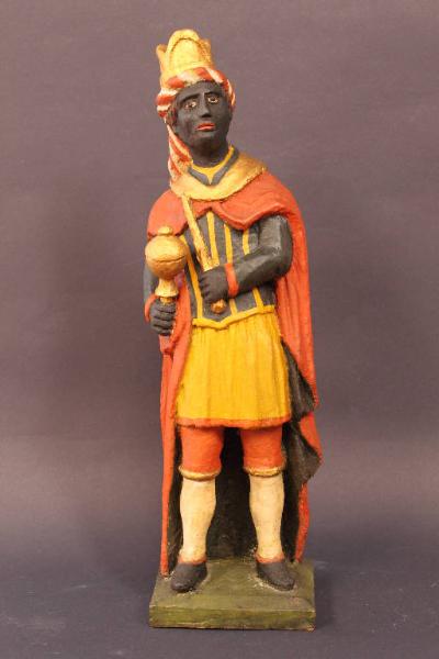 Scultura rappresentante un Re Magio con un dono nella mano.