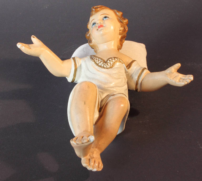 Gesù Bambino sdraiato con le braccia ed il volto rivolti verso l'alto.
