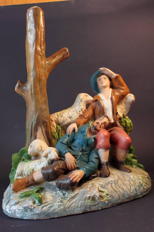 Gruppo costituito da due pastori: uno seduto che sembra osservare il cielo tenendo il cappello con la mano sinistra, il secondo è sdraiato ed addormentato. Il gruppo è ambientato grazie ad una pianta.
