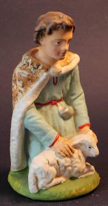 Bambino inginocchiato con piccolo agnello.