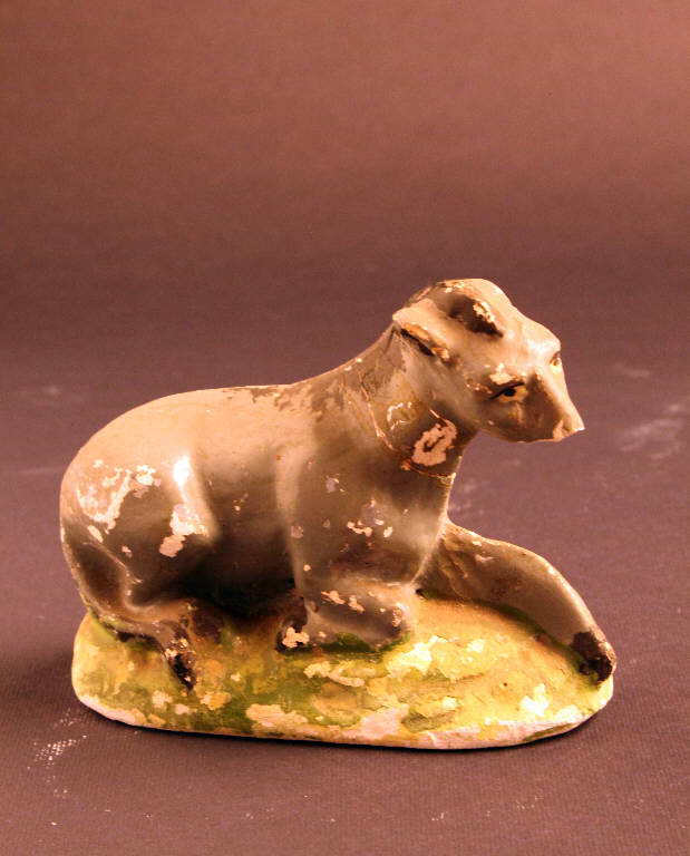 Statuetta rappresentante un asino in posizione sdraiata.