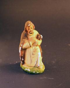 Statuetta da presepio rappresentante San Giuseppe inginocchiato con le mani sul petto.