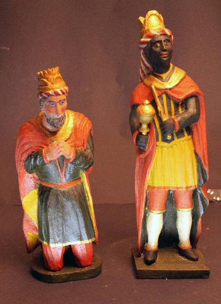 Coppia di Re Magi in legno dipinto.