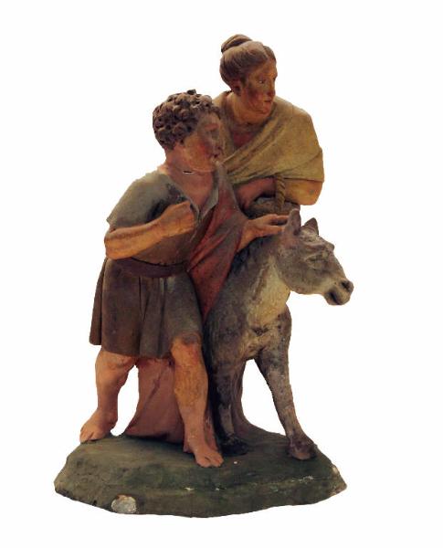 - NOTIZIE STORICO CRITICHE Statuetta da presepio rappresentante una scena pastorale raffigurante una donna e un bambino. Tra le due figure vi è un asinello.