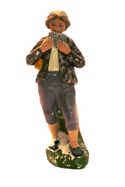 Statuetta da presepio rappresentante un pastore intento a suonare un flauto di Pan.