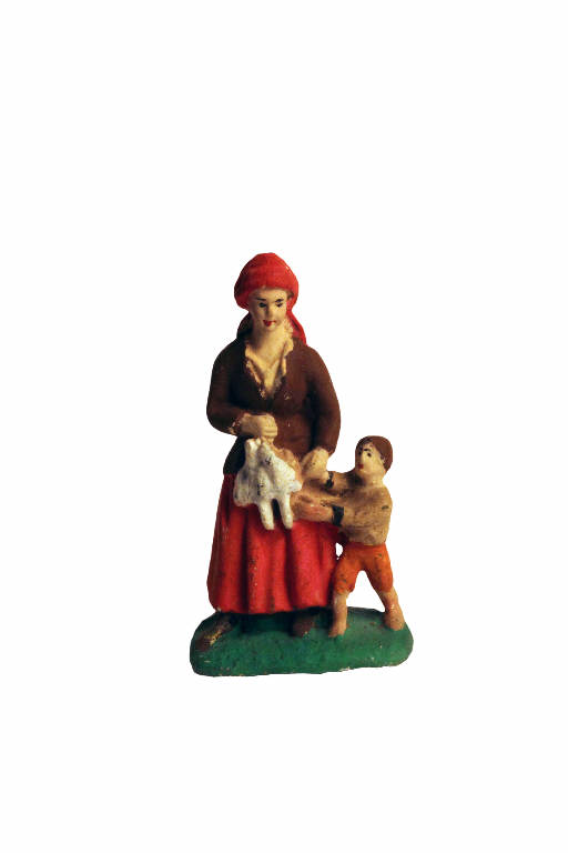- NOTIZIE STORICO CRITICHE Statuetta raffigurante una donna con foulard rosso che stringe nella mano destra un volatile morto e nella sinistra un bambino.