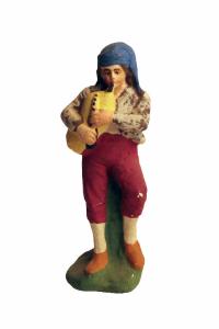 - NOTIZIE STORICO CRITICHE Statuetta da presepio rappresentante un pastore, con copricapo blu e pantaloni rossi, seduto su di un masso intento a suonare una cornamusa.